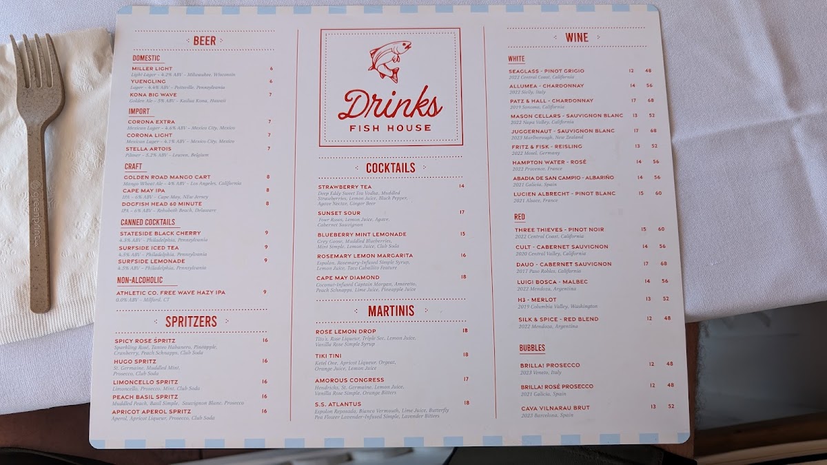 Welcome to Fish House, a delightful culinary gem nestled in Cape May, NJ. Located at 502 Sunset Blvd, this vibrant eatery boasts an upscale ambiance reminiscent of Jersey Shore charm blended with Nantucket elegance. Diners rave about the mouth-watering menu, which features highlights such as crispy fried fish, succulent shrimp, and expertly grilled salmon. Not to be missed is their acclaimed crab cake burger, a true crowd-pleaser.